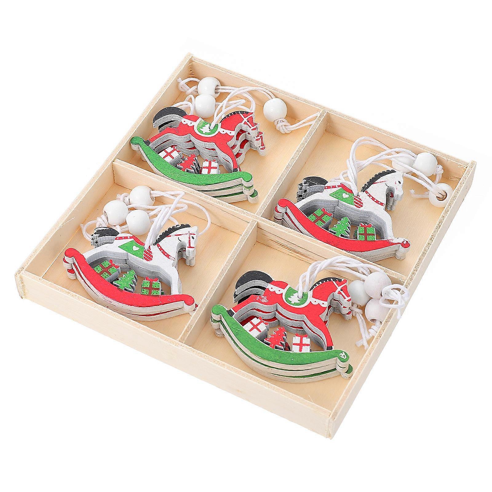 Crafting Ornaments Wooden Xmas Hanging Pendant Christmas Decorative Item Assorted Color 5x3.5cm Holiday Decorations 12Pcs