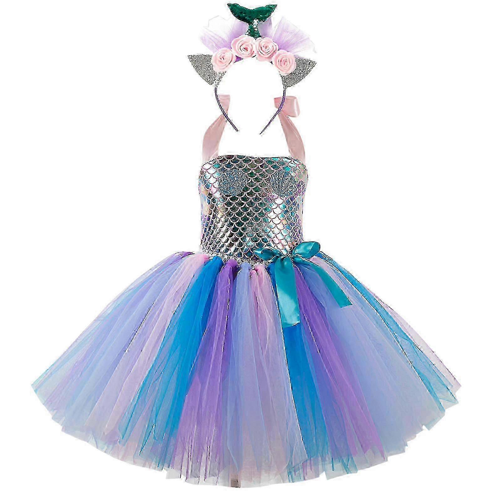 Summer girl suspender tie Mermaid show dress skirt + hairband birthday gift