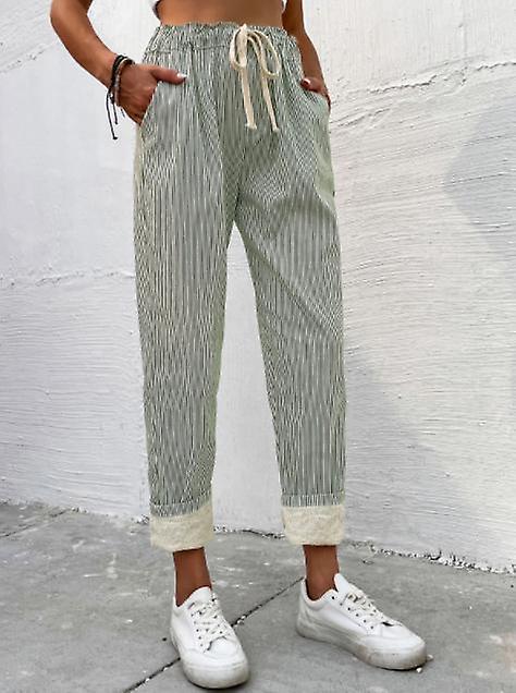 2022 Summer New Women's High Waist Slim Striped Straight Stitching Wide Leg Pants