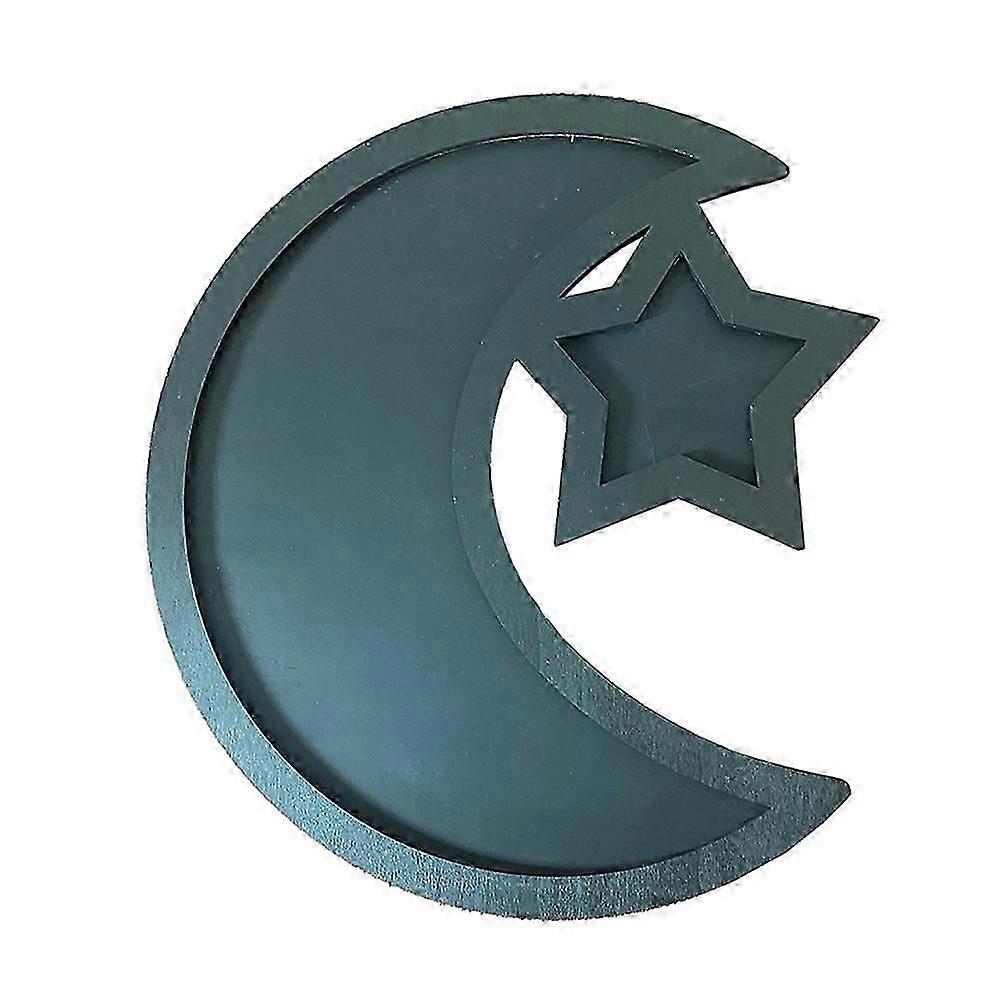 Eid Ramadan Serving Tray with Moon and Star Rustic Wooden Crescent Party Food Serving Tableware Display Holder Festival Decor