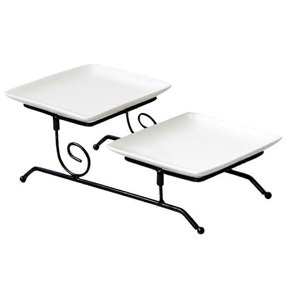 Cake Serving Tray Dried Fruits Plate Two-Tier Simple Fashion Design Afternoon Tea 24.50X12.00X9.40CM Ceramic 1 Set