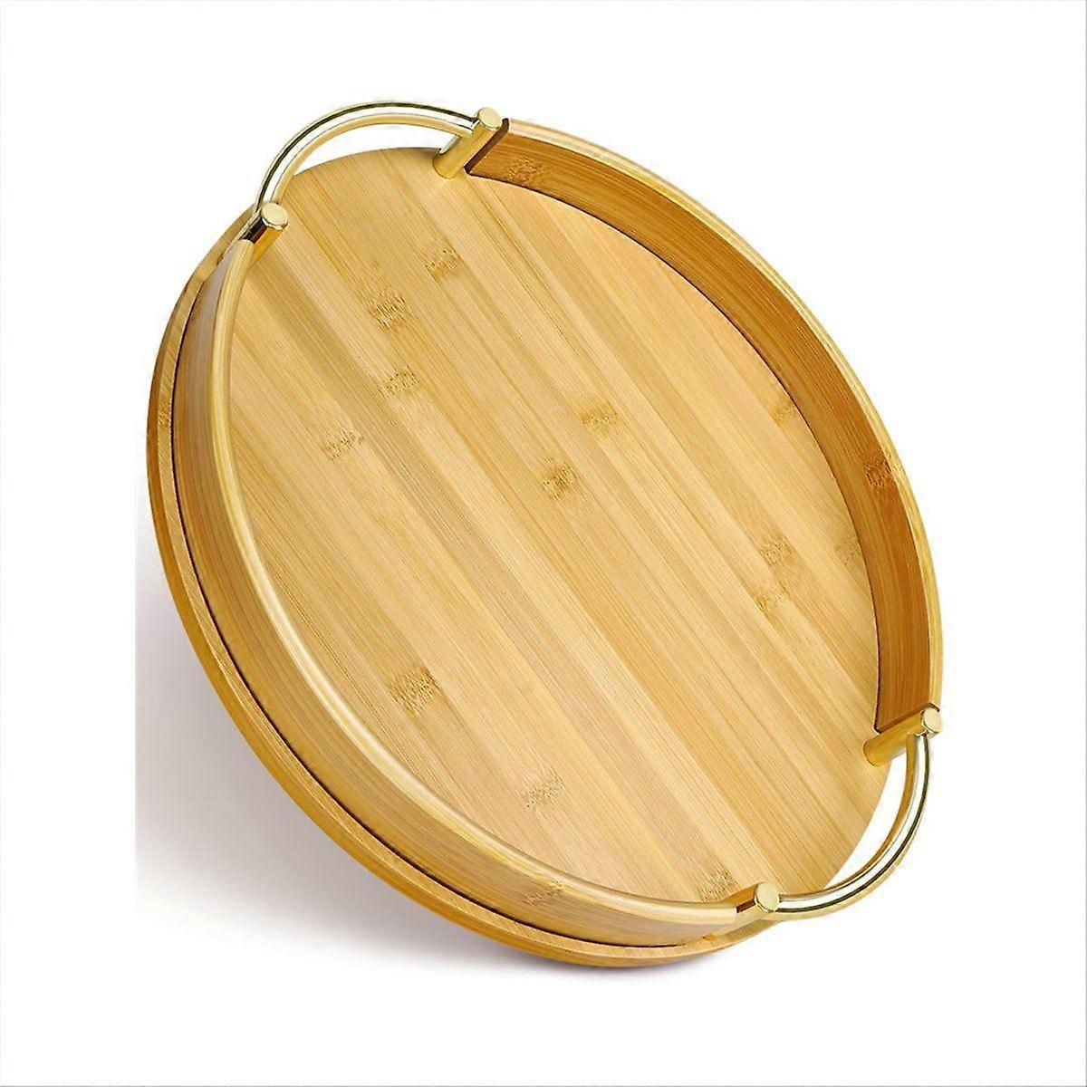 14Inch Round Bamboo Serving Tray with Handles - Decorative Tray,Breakfast Tray, Coffee Table Tray,