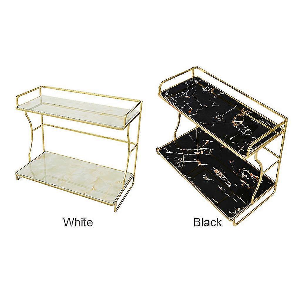 Modern Tray Bedroom Cosmetic Bathroom Countertop Makeup Organizer 2 Tire Marble Print Shelf Storage Rack Dresser Multifunctional