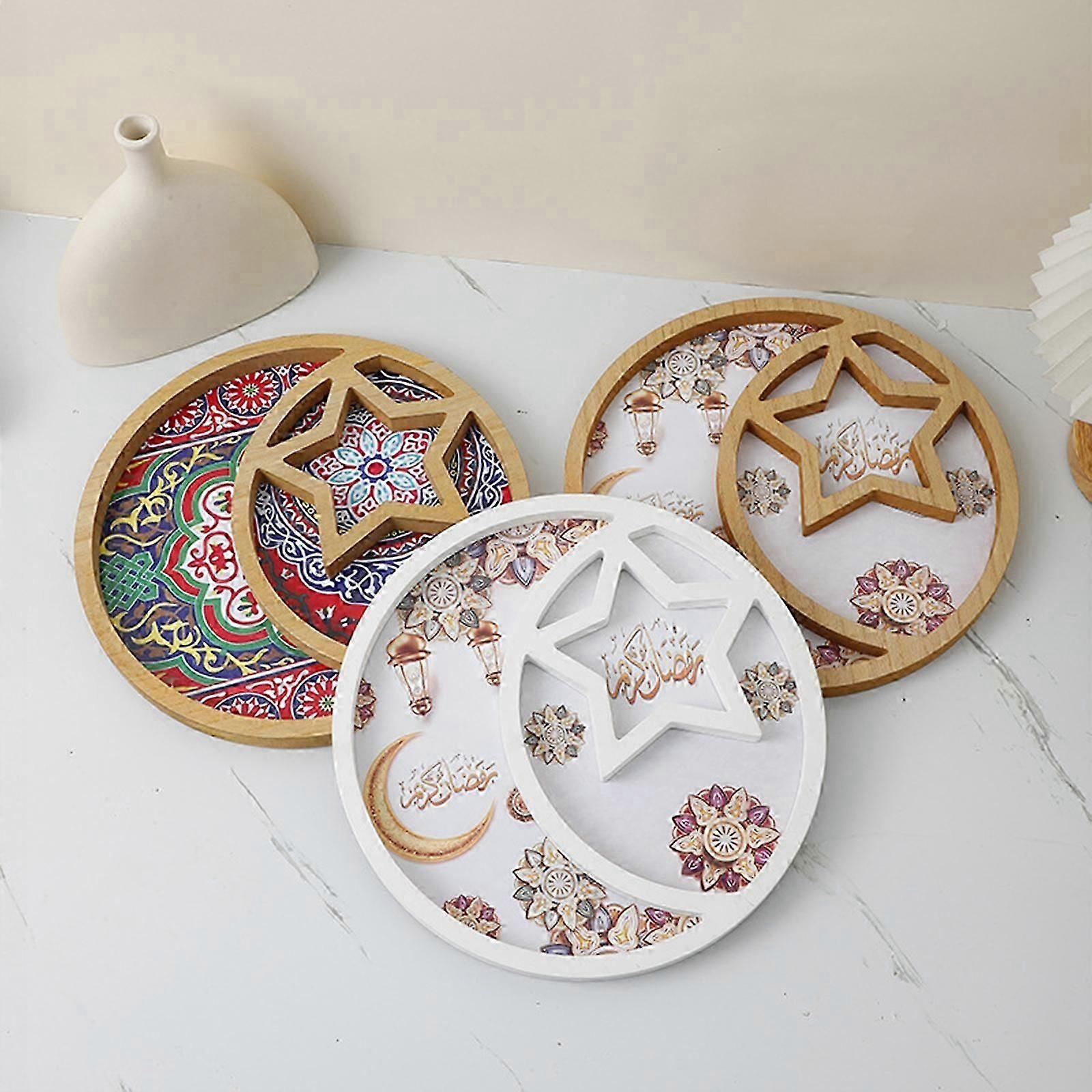 Wooden Eid Mubarak Dessert Tray, Moon Star Wooden Plate Tray, Dessert Food Fruit Storage Tableware for Ramadan and EID Mubarak Decorations