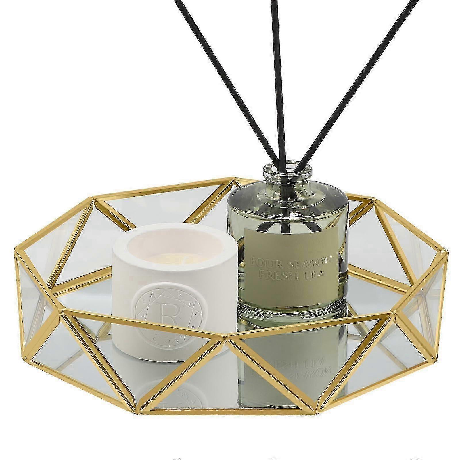 Decorative Gold Glass Mirror Tray for Cosmetics & Perfume Organizer - Elegant Bathroom Serving Tray & Vanity Storage Solution