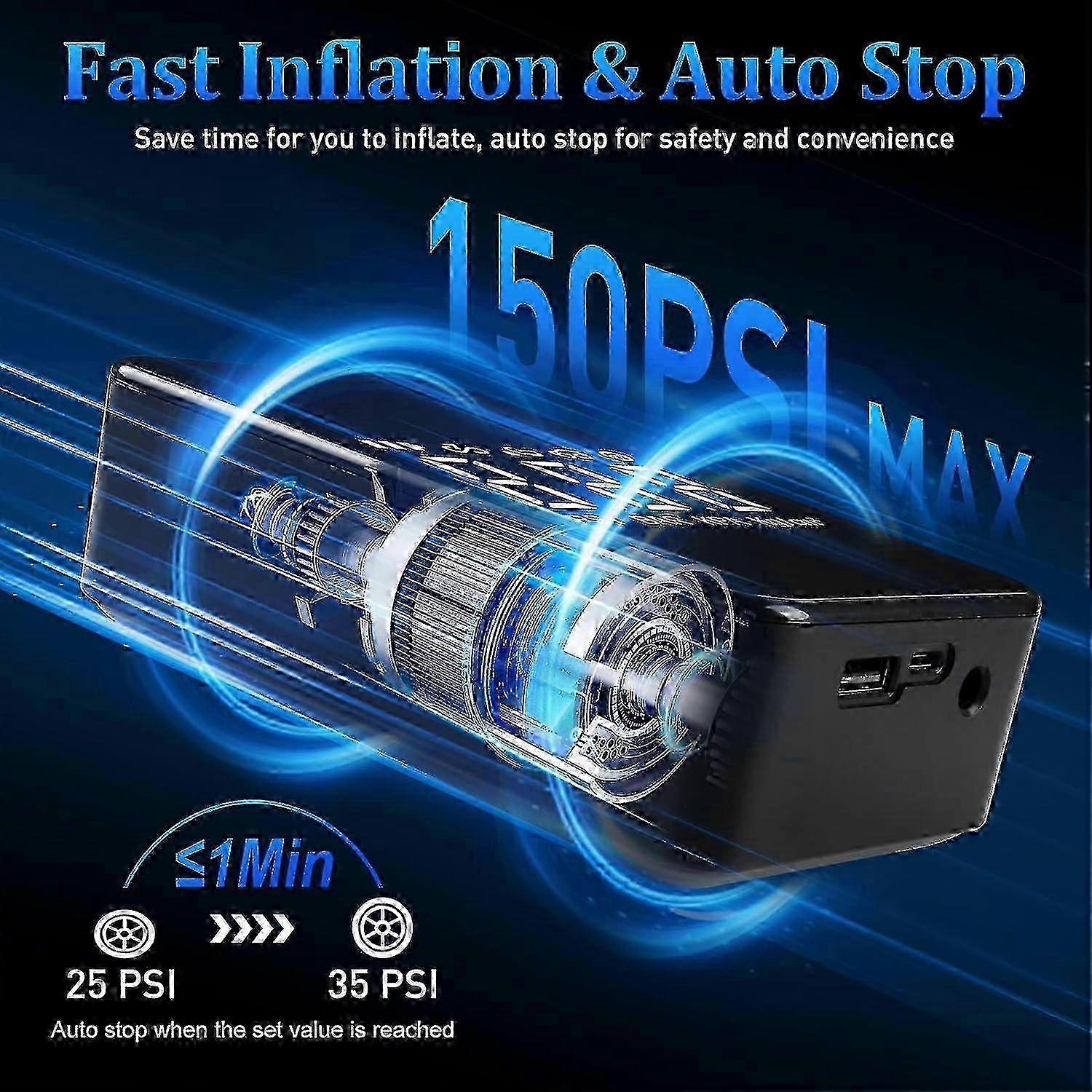Tyre Inflator Air Compressor,Portable Air Compressor with 40CM Air Hoses,6000mAh Car Tyre Pump with 20240603