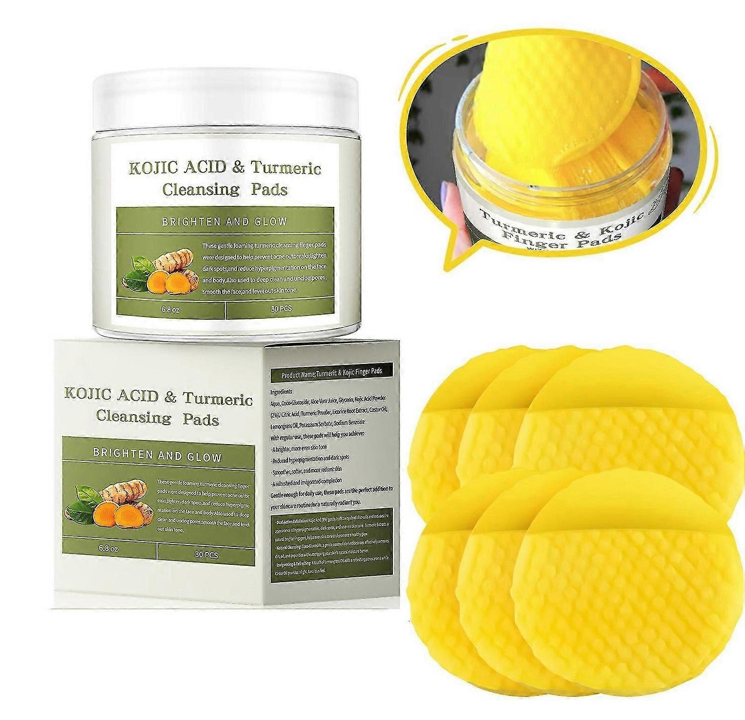 Turmeric Kojic Cleansing Pads, Natural Turmeric Cleansing Pads for Face, Balance Skin Water and Oil,