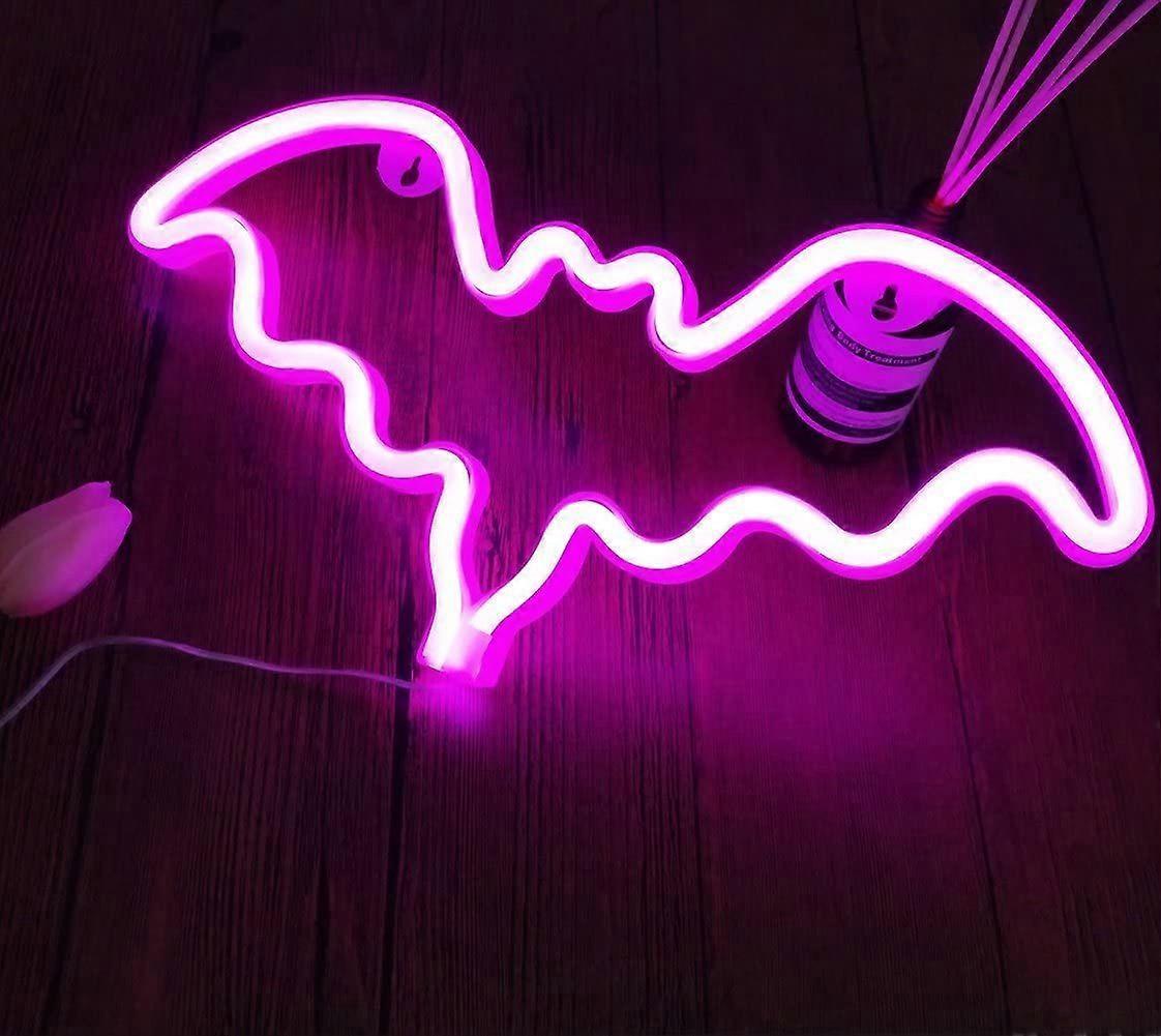 Neon Light,LED Bat Sign Shaped Decor Light,Wall Decor for Christmas,Birthday Party,Kids Room, Living Room, Wedding Party Decor(Pink)1pcs