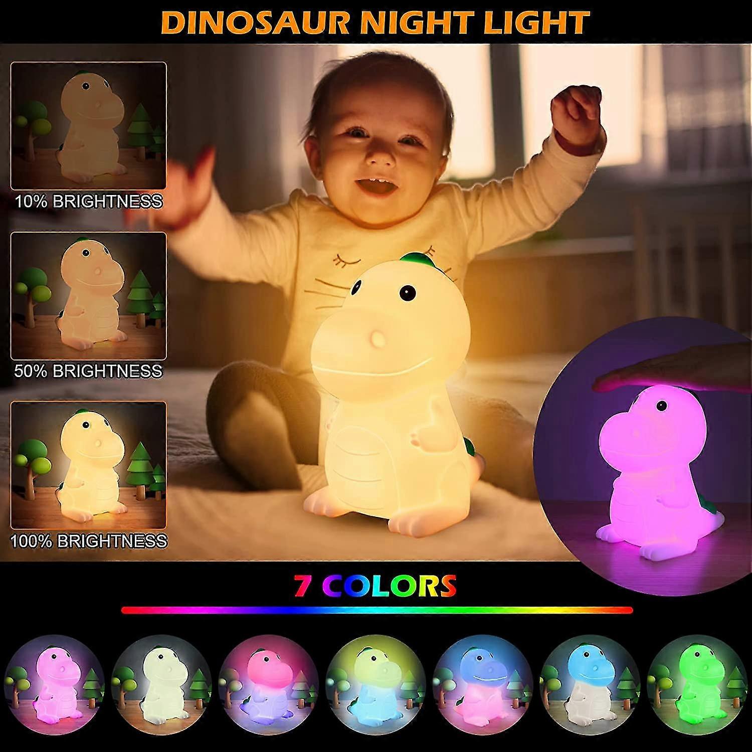 Dinosaur Night Light for Children, 7 Colored Night Lights for Boys and Girls, kawaii cute Night Light, with touch Sensor and Rechargeable Battery, LED