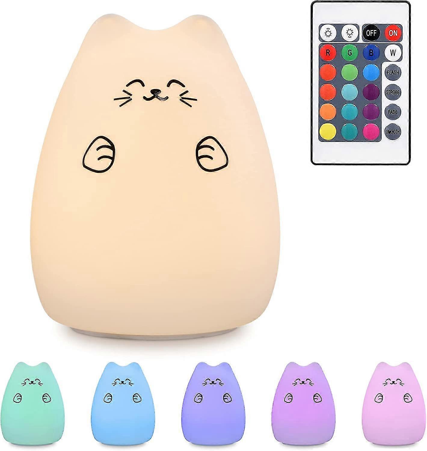 Night Light For Kids - Colour Changing Led Bedside Lamp With Remote For Children Girls Boys Bedroom Nursery Usb Rechargeable Nightlight - Cat1pcs