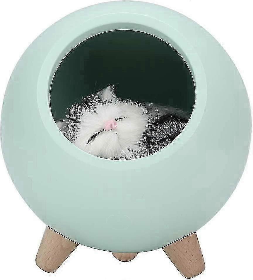 Cat Night Light Small Pet House LED Night Light USB Charging Soft Silicone Bedroom Night Light (Green)