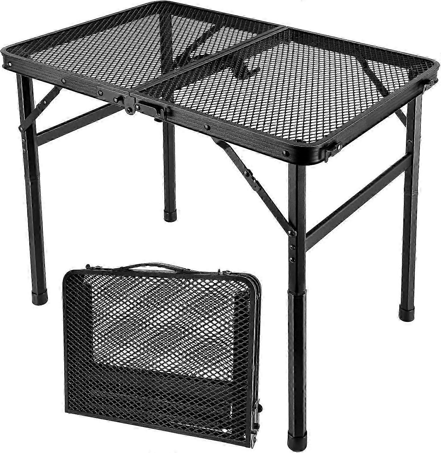 Compact and Grill Table: The folding grill table measures 15.8 x 11.8 x 2.5 inches when folded and is very easy to store and transport when folded. It weighs only 4 pounds, perfect for outdoor adventures, beach outings, camping trips or picnics. Enjoy convenience without sacrificing space! Versatile Height Options: Camping grill table unfolds to a spacious 23.7 "L x 15.8 "W surface area, our table adjustable height settings that cater to both adults and children. With two adjustable heights (10.6" and 22"), it can be used comfortably while sitting or standing, making it ideal for any occasion Sturdy Construction: The outdoor grill table is made of high quality aluminum materials, the tabletop is more wear-resistant, rust-resistant and fireproof. This grilling table has a sturdy design that can support up to 68 lbs (30 kg). The durable metal frame and innovative design ensures stability and longevity, allowing you to use it for various activities, from barbecues to crafting sessions Easy to Clean: The barbecue table has a unique mesh table top design reduces the weight of the table while effectively preventing water buildup, and most importantly, the bbq table top is easy to clean, just wipe it clean with a damp cloth. Enjoy your food without the hassle of cleaning this folding table!