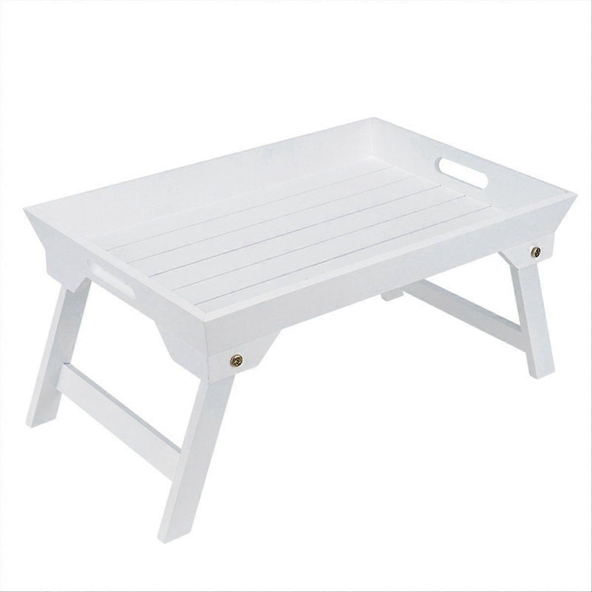Outdoor Folding Table,Wooden Dormitory Bed Laptop Small Table,White