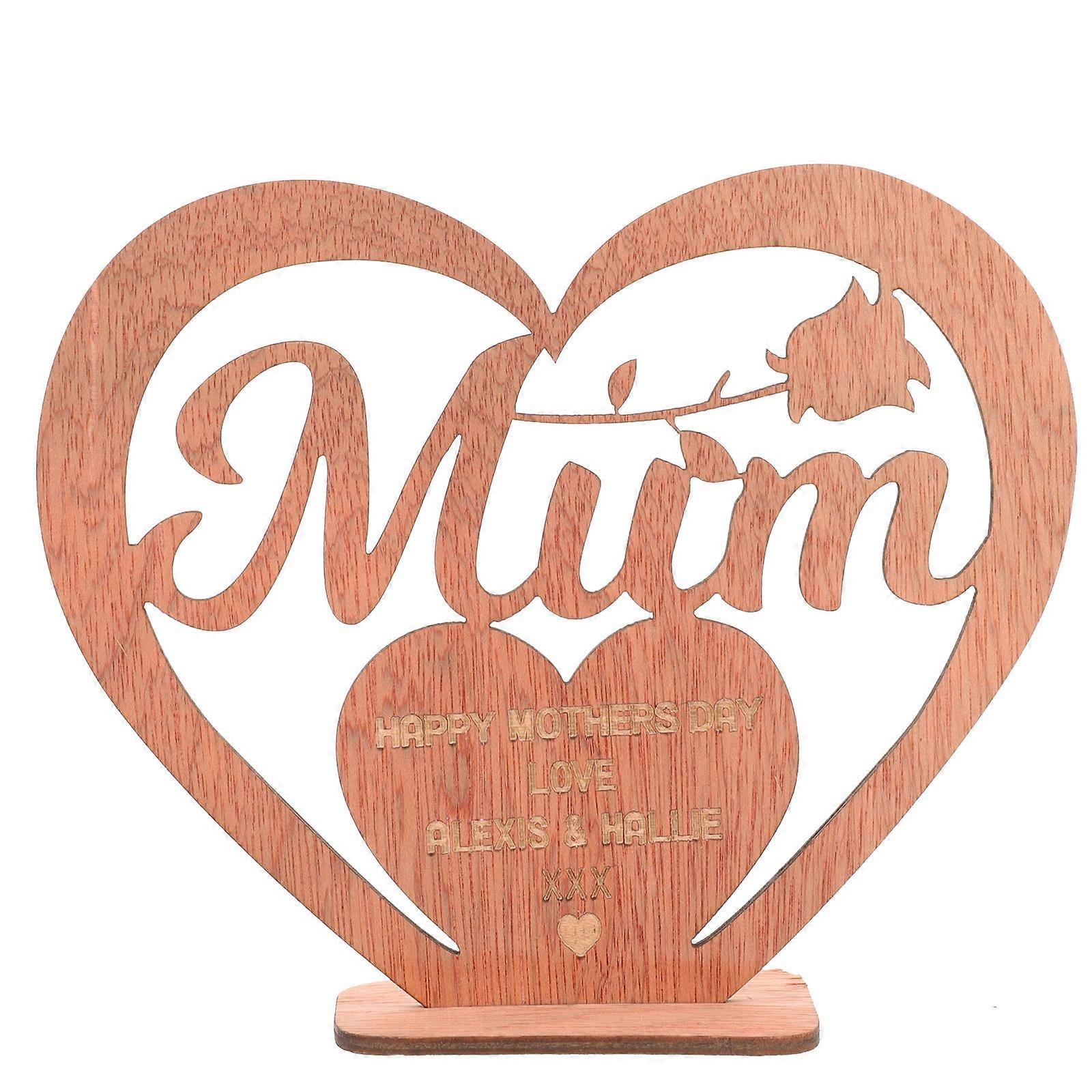 Wooden Heart Table Sign Mother's Day Craft Office Decor 16.5x14cm 1Pack