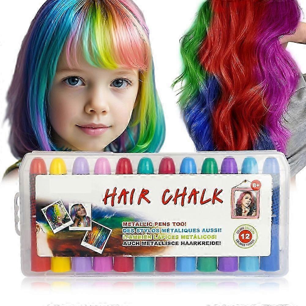 Hair Chalk for Girls Washable, 12 Colors Temporary Hair Chalk for Girls Gifts for Dark Hair, Hair Dye Marker Gifts for Teen Girls Kids Age 8+