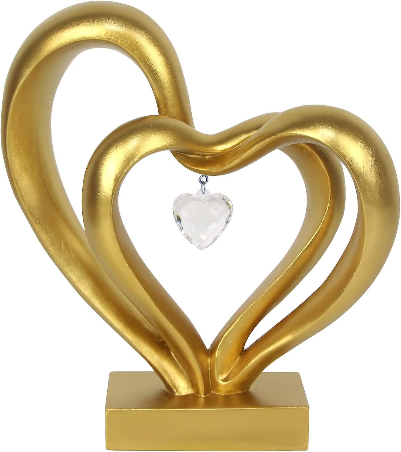 Double Layer Heart Statue Sculpture,modern Figurines Love Pendant Resin Ornament Home Decoration, Valentines Day Wedding Anniversary Romantic Gift(gol