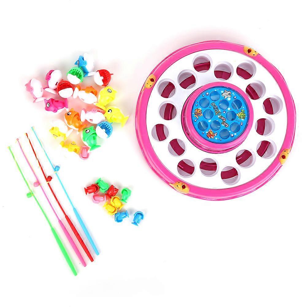 Double Layer Electric Rotating Board Fishing Game for Children with Fishing Poles(Pink )