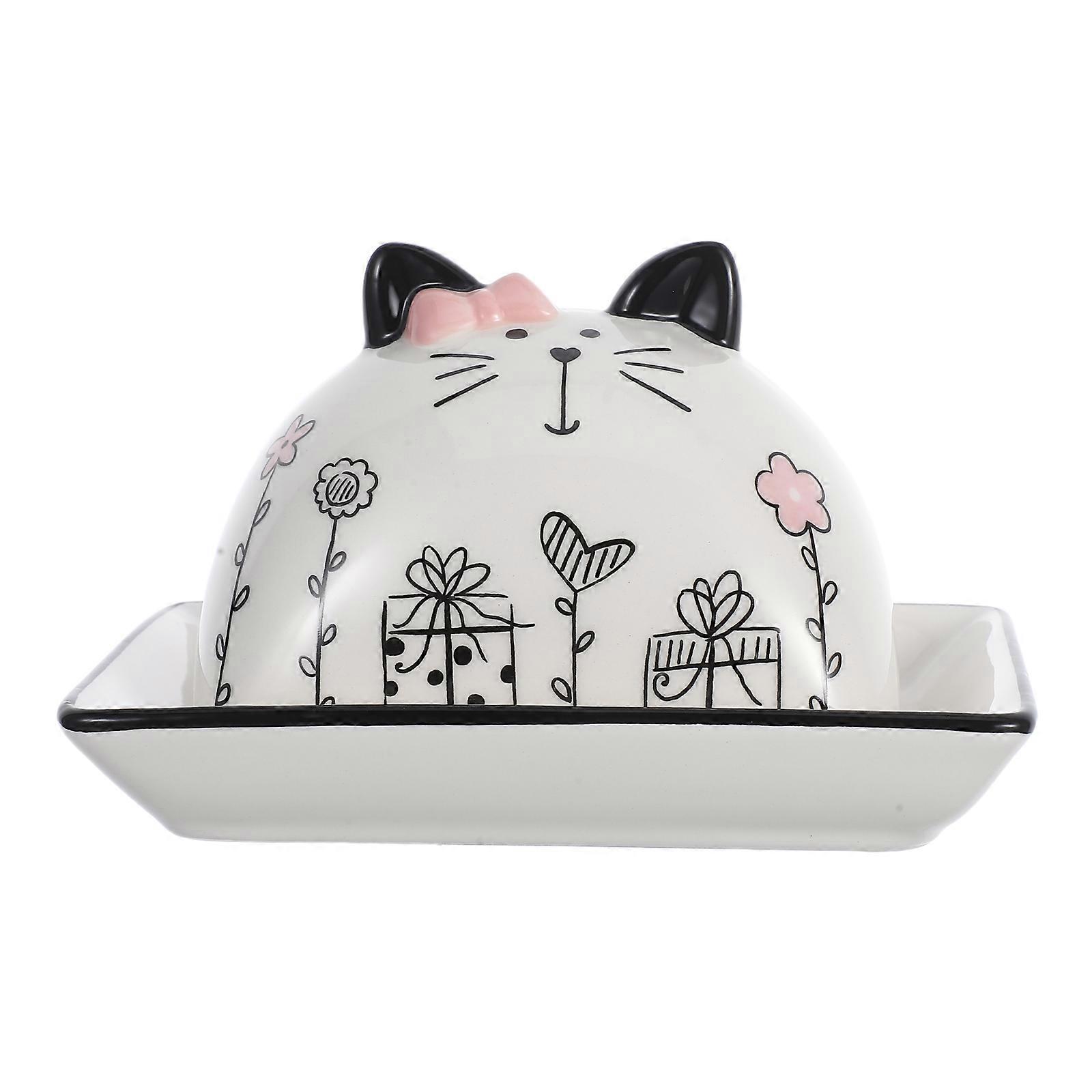 Ceramic Butter Dish with Lid, Cartoon Design Airtight Storage for Cheese and Desserts, Kitchen Use