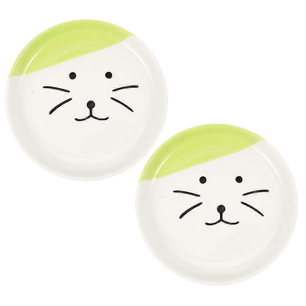 Ceramic Cat Dish Indoor Pet Plate Contemporary Design Round Shallow 14.5X2.5CM Feeding 2Pcs