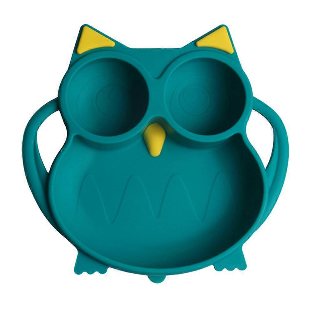 Silicone Dinner Plate with Suction Cup Base, Cartoon Owl Design, Microwave and Refrigerator Safe, Green