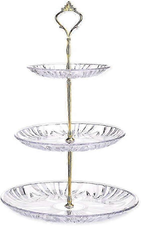 Transparent Crystal Dried Fruit Plate, Three-layer Dessert Table Decoration,Snack Stand, Gift Fruit Plate, Cake Stand(gold)