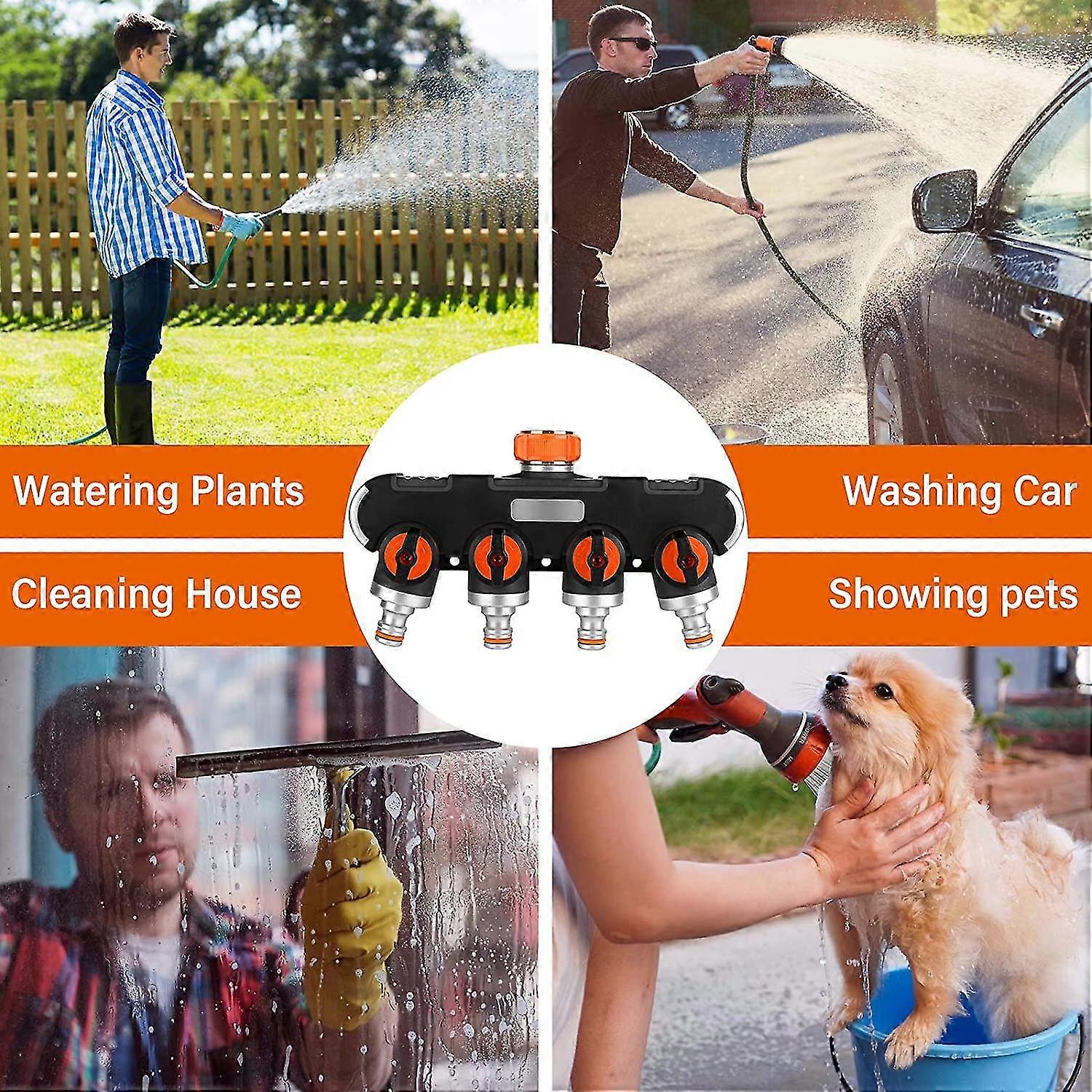 Way Watering Distributor - 3/4" And 1/2" Water Distributor With Tap Valve For Simultaneously Connecting Two Devices, Adjustable Water Flow, Adapter Fo
