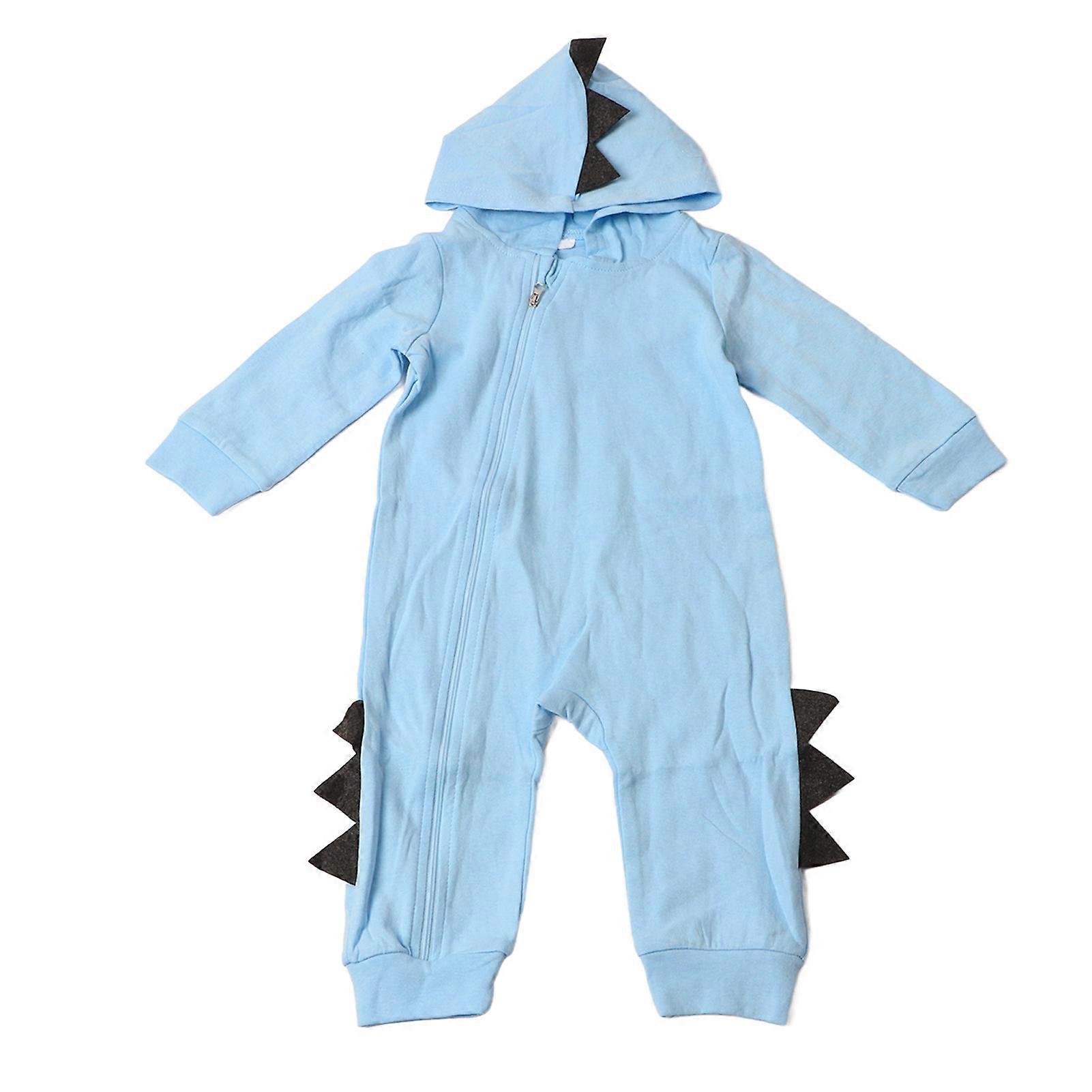 Baby Cartoon Dinosaur Jumpsuit Hooded One Piece Zipper Closure Onesie Outfits for Halloween Blue 80cm