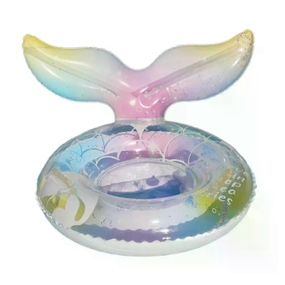 Baby Mermaid Swim Ring Blow Up Swim Tube Leakproof Swim Float Tube with Handles & Seat with Sun Protection Canopy for Pool Beach