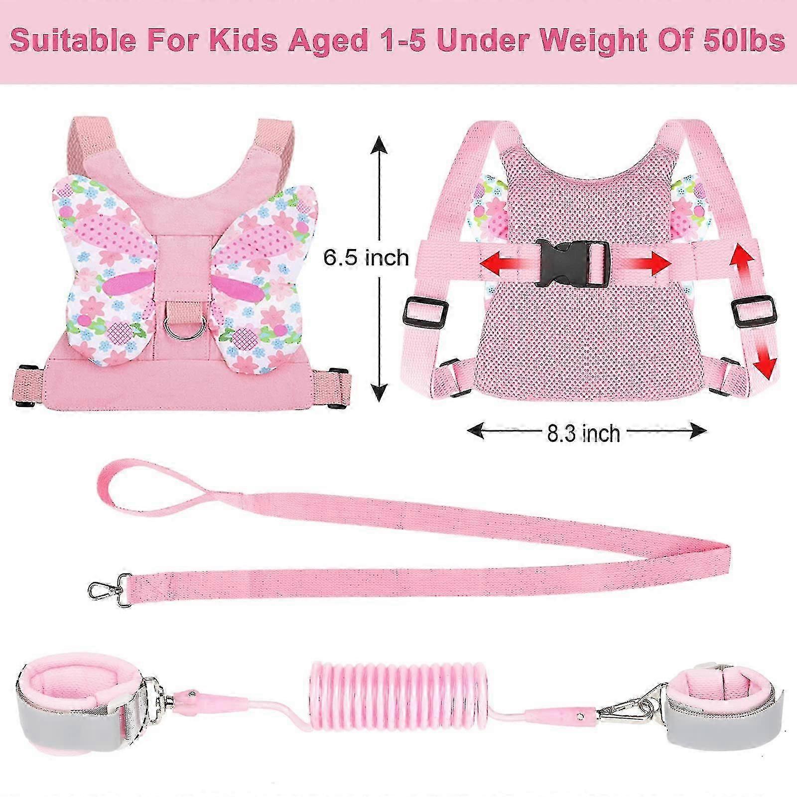 Toddler Harness Leash + Anti Lost Wrist Link, Kids Butterfly Harnesses With Children Leashes, Cute Baby Leash Walking Assistant Wristband Strap