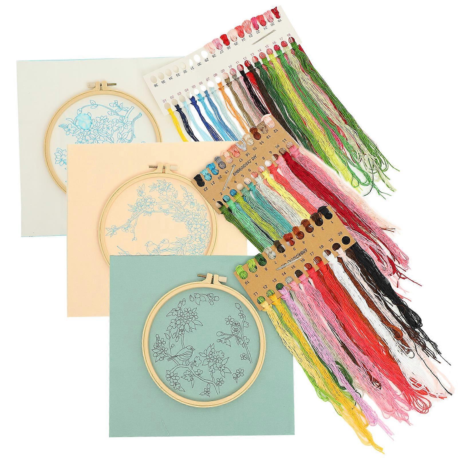 Embroidery Kit 3 Sets For Beginners Featuring Assorted Color Supplies For Family Bedroom And Office Decoration
