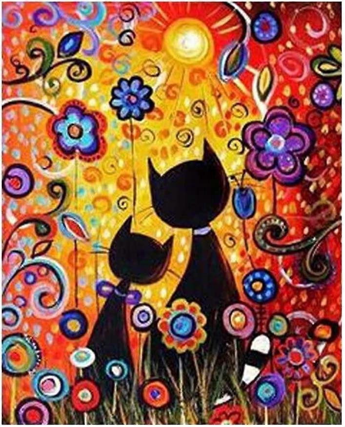 DIY Paint by Numbers Kit for Adults - Cats and Flowers | Paint by Number Kit On Canvas for Beginners | Home Wall Decor | Pre-Printed Art-Quality Canva