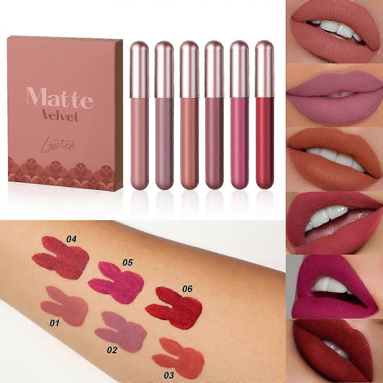 6Pcs Matte Nude Liquid Lipstick Set, Long-Lasting & Pigmented Shades, Lip Gloss Bundle Gift Collection for Girls/Women