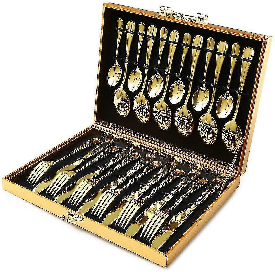 Cutlery Set Golden, 24 Pieces Cutlery Set, Made Of Stainless Steel