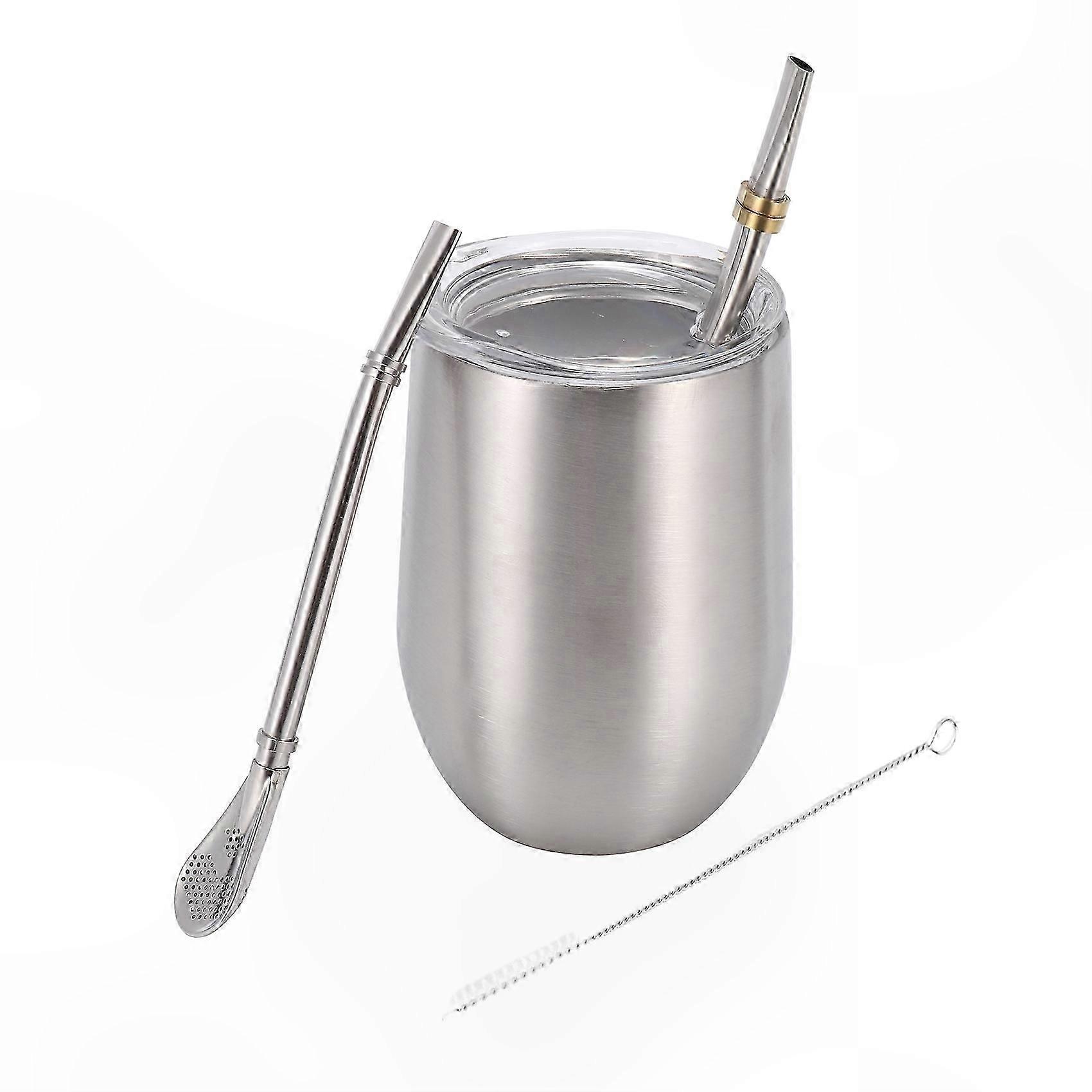 Double-Wall Insulated Tea Cup Set with Lid, 12oz Stainless Steel Cup, Includes 2 Straws and Spoon for Herbal Drinks