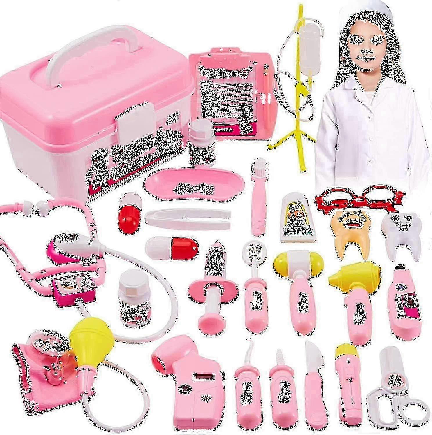 Children 35 Pieces Role Play Doctor Toy Set With Doctor's Smock Compatible With Kids