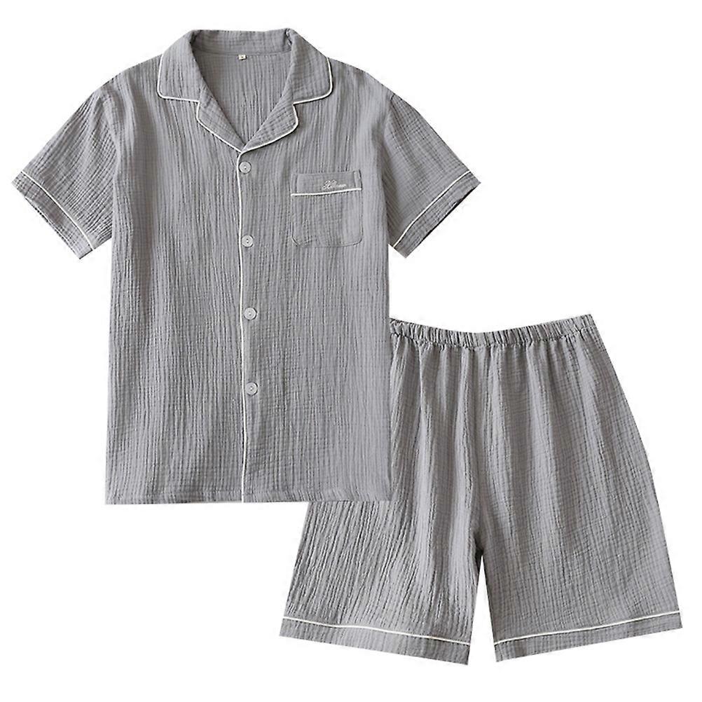 Mens Short Sleeve Pajamas Set Comfortable Wearing Night Wear L Grey Lightweight 1 Set