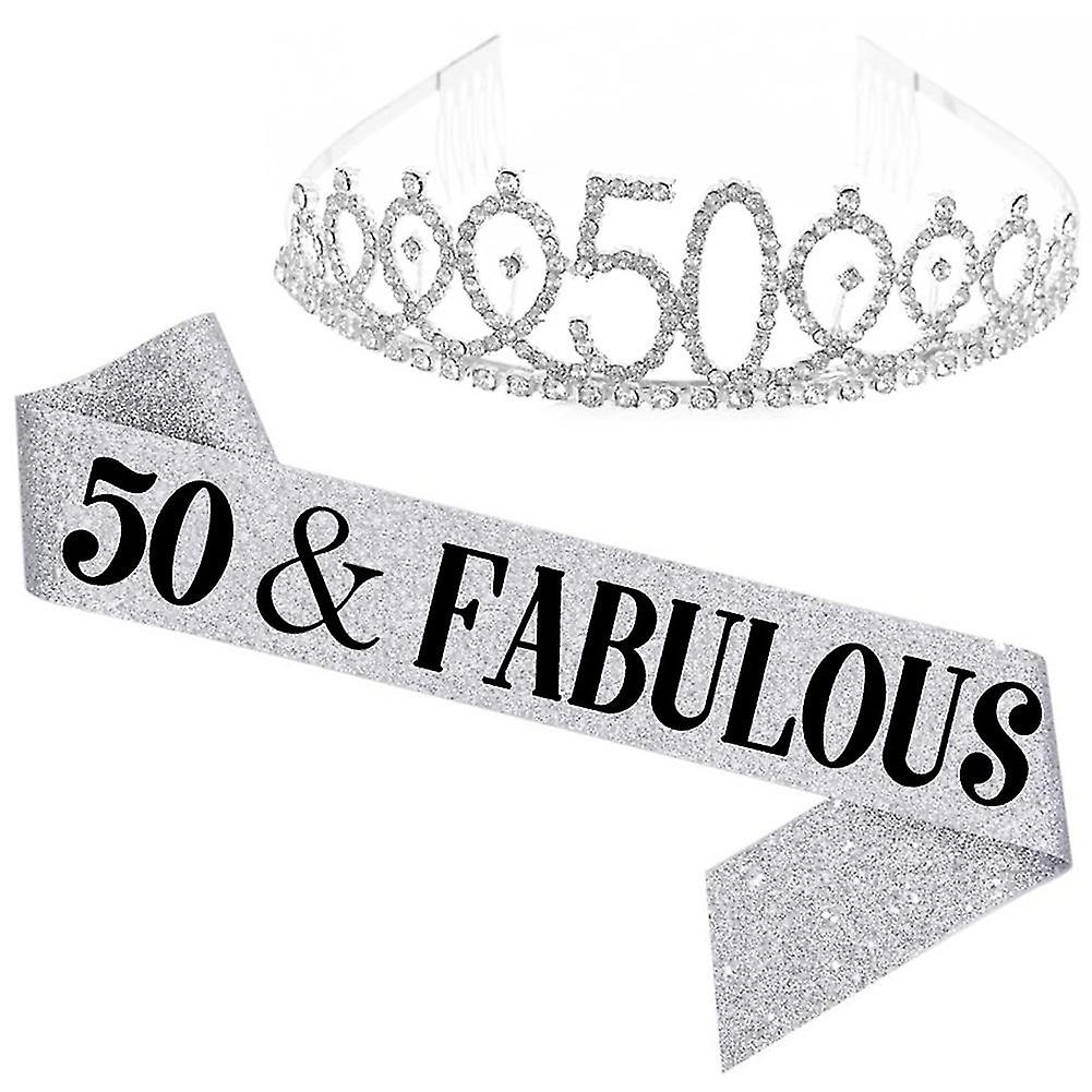 Women Glittering Rhinestone Letter Print Sash Tiara Set Birthday Party Supplies Jikaix
