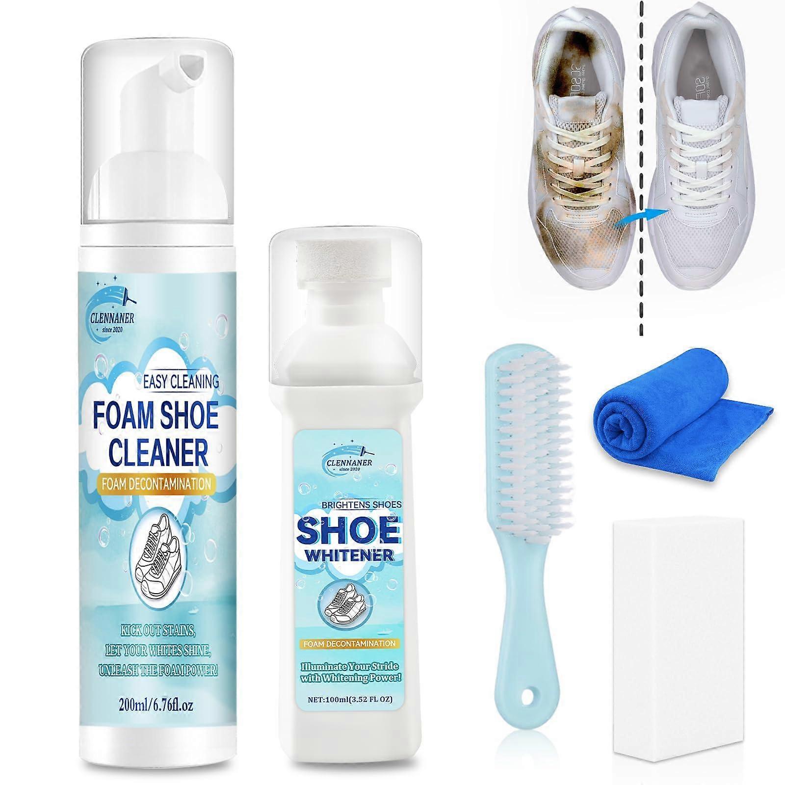 Shoe Cleaning Kit, 6.76 oz White Sneaker Cleaner, Brush and Towel Removable, For Leather, Knitwear, Boots, Canvas, Suede, PU -GSL