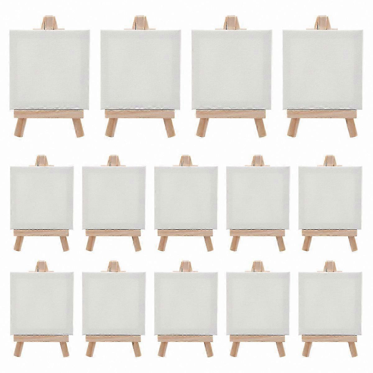 4x4 Inch Mini Canvas Easel Set with Brushes, 14Pcs Art Kit for Kids, Pre-Stretched Canvas Painting Supplies