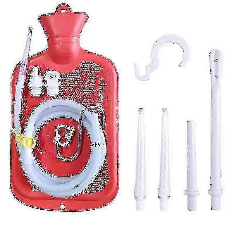 ENEMA BAG: 2 L enema bag kit with flow-control clamp,60 inch Long Silicone Hose, 1 flow-control clamp,1 switch3 tips 2 hooksRED REUSABLE: Entire Combination Kit is Reusable EASY TO USE- Enemas bag sets are convenient to use, just connect tube, fill the liquid, adjust flow-control clamp, enema douche for clean. MULTI-PURPOSE: Can serve as a hot/cold water bottle, douche or enema. Suitable for water or coffee cleansing, Gerson therapy, general cleansing, or feminine douche CONVENIENT: Perfect for Travel or At Home Use Note: Due to the light and screen setting difference, the item's color may be slightly different from the pictures. Please allow slight dimension difference due to different manual measurement.