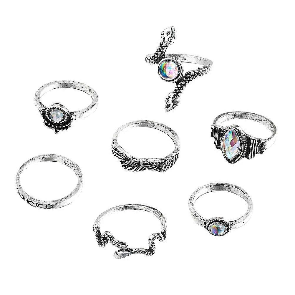 Vintage Snake Shaped Ring Set Delicate Finger Jewelry for Women, Stylish Accessory for Parties, Festivals, Friends and Lovers 7 Piece Ornament