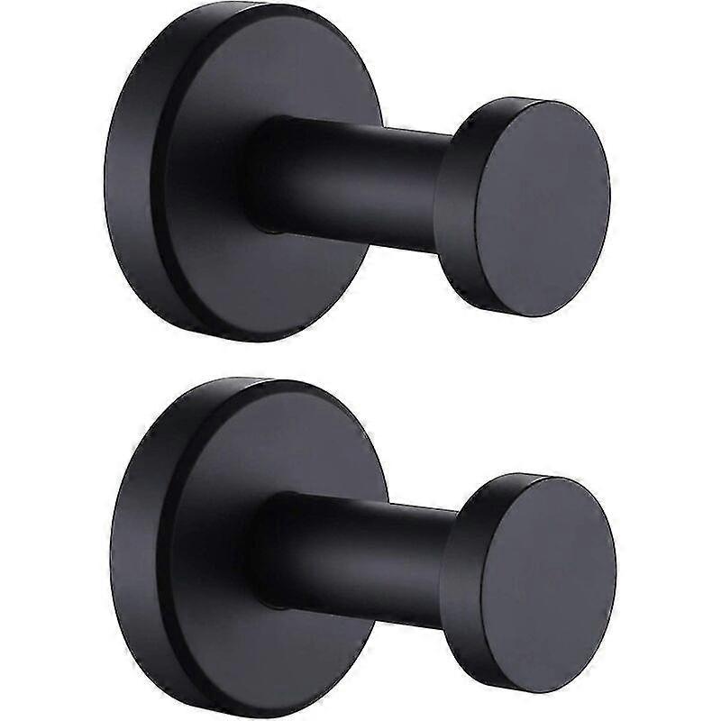 Bathroom Robe Hook Set of 2 Matte Black Bathroom Towel Hooks, Round Stainless Steel Hanger, Contemporary Decorative Wall Mount for Toilet, Kitchen - M
