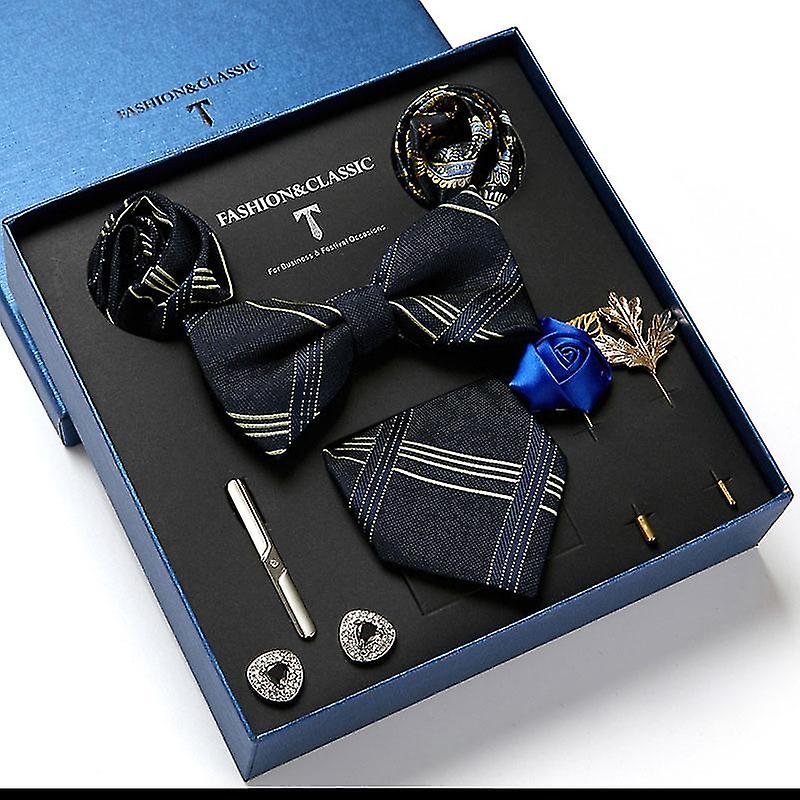 Men's Bow Neckties Set Of 9, Wedding Gift Tie Business Suit Tie + Bow Tie + Square*2 + Cufflinks*2 + Tie Clip + Brooches*2 + Gift Box