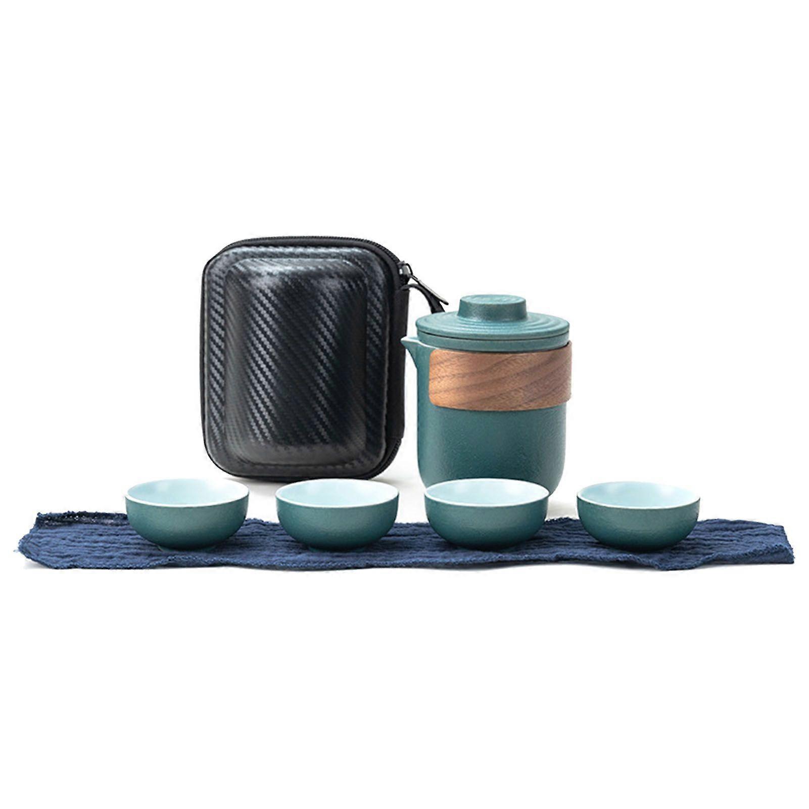 Travel Tea Set Portable Anti Burn Mini Ceramic Teapot Infuser Set for Outdoor with Storage Bag Green Pot with 4 Cups