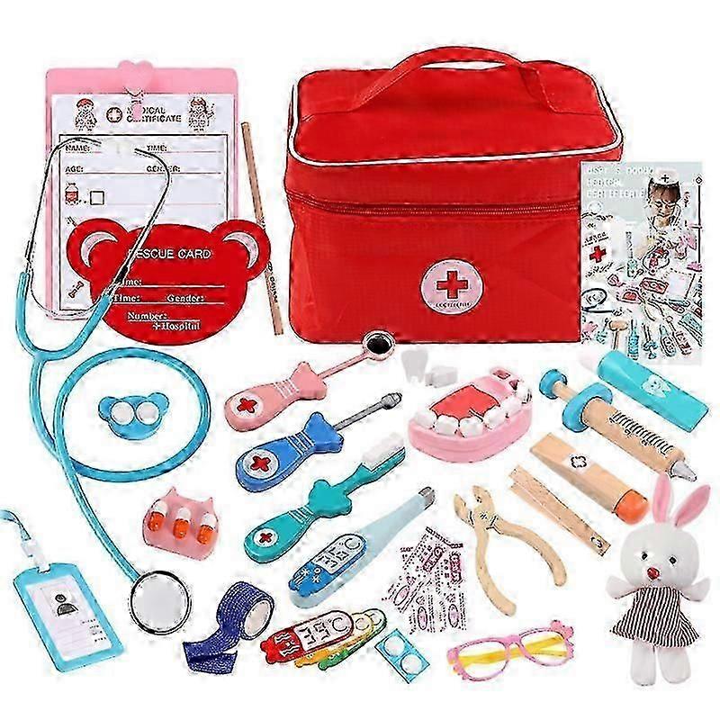 Wooden Doctor Kit for Kids, Pretend Play Dentist Medical Toys Set