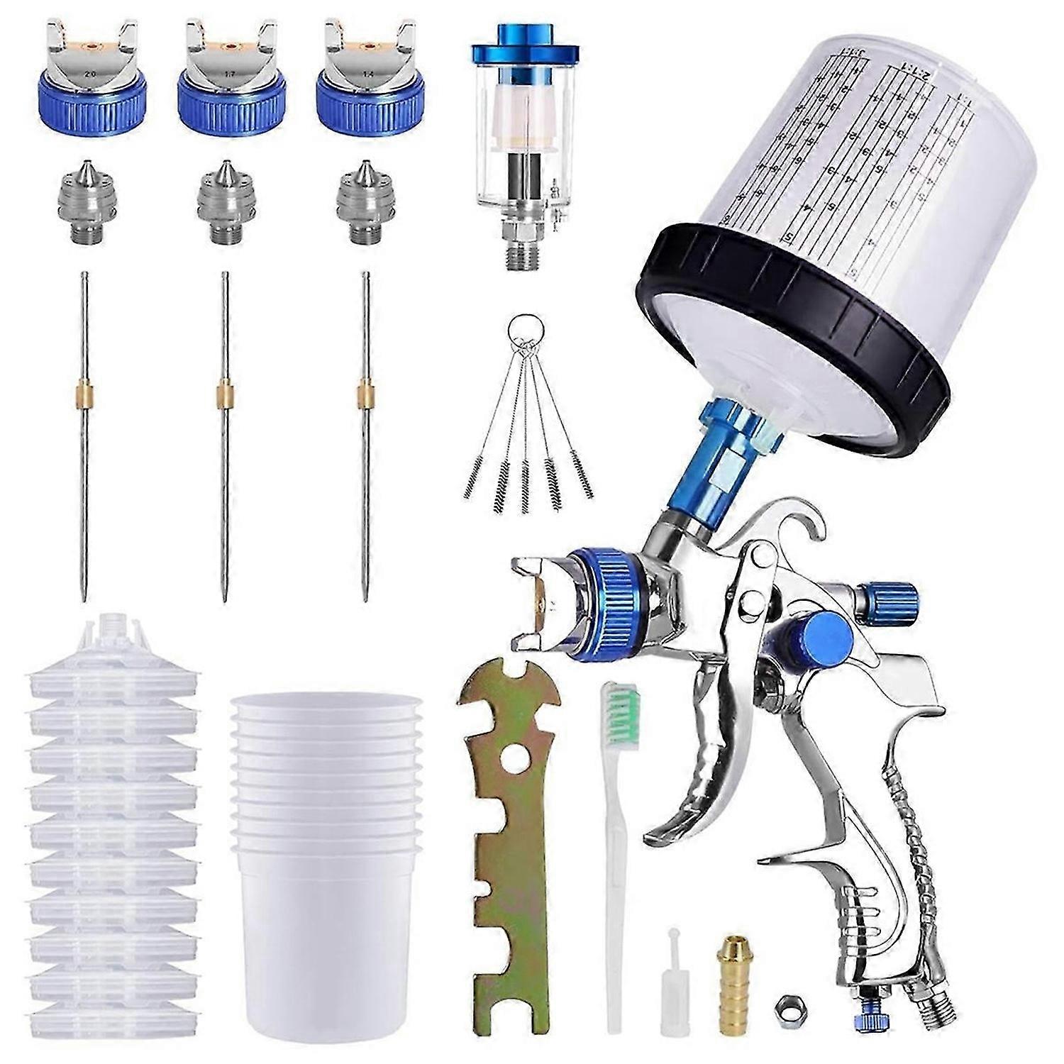 Hvlp Air Paint Kit with 10Pcs 600ML Mixing Quick Cups, 1.4/1.7/2.0mm Nozzles & Water Oil Separator,