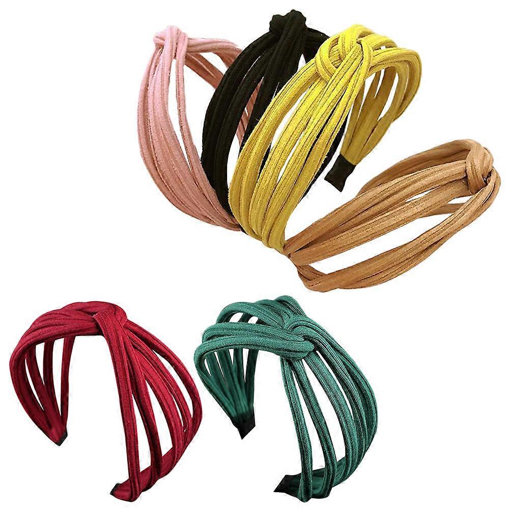 6pcs Knotted Headband Set for Women Wide Fabric Hair Accessories in Yellow, Black, Khaki, Dark Green, and Pink for Daily Wear and Parties