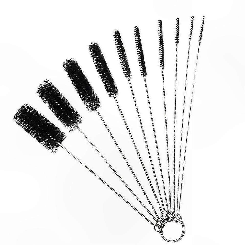 Kitchen Cleaning Brush Set, 10-Pack Stainless Steel Bottle Cleaner, Personal Care Tool, 20.8cm Black