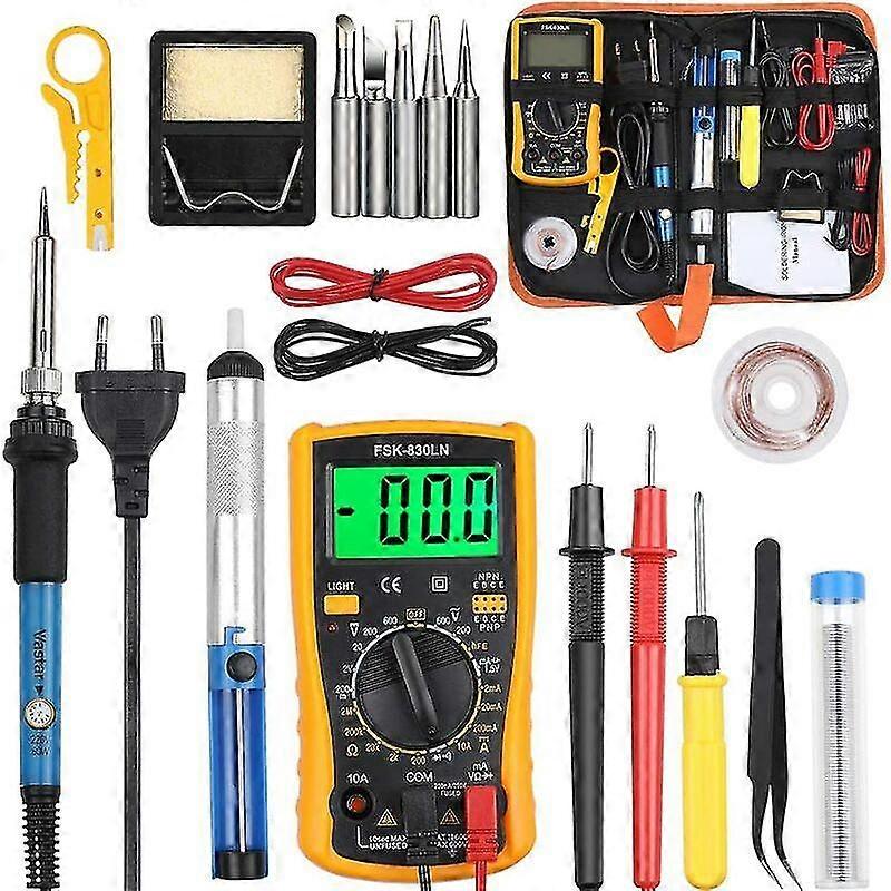 Soldering Iron Kit, 60w Soldering Kit, 200450 Adjustable Temperature, Multimeter, 5pcs Soldering Tips, Desoldering Pump, Soldering Wire, Tweezers, Scr