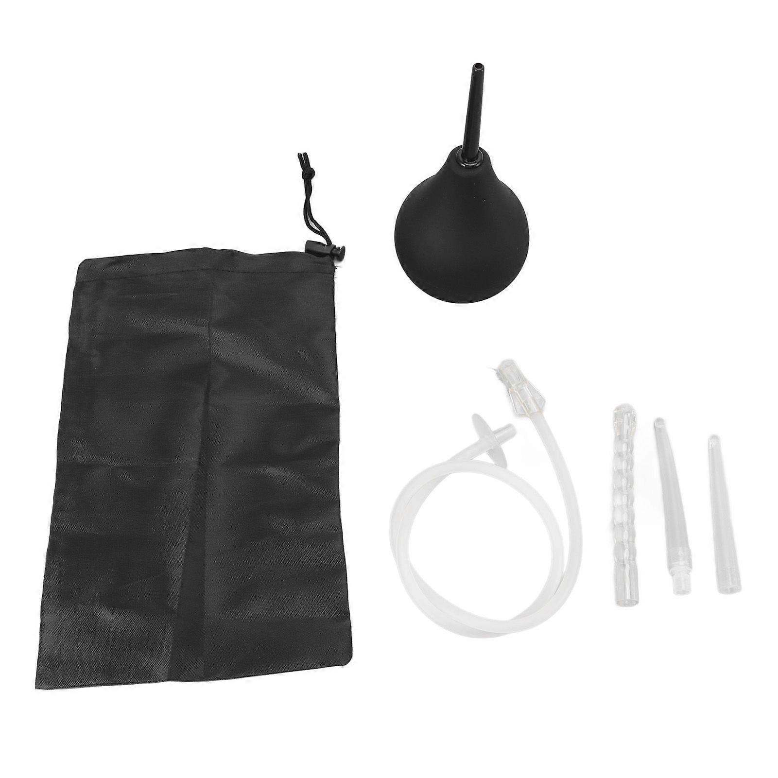 Black Silicone Enema Bulb Kit 224ML Clean Anal Douche with Hose and Replaceable Nozzle for Men Women